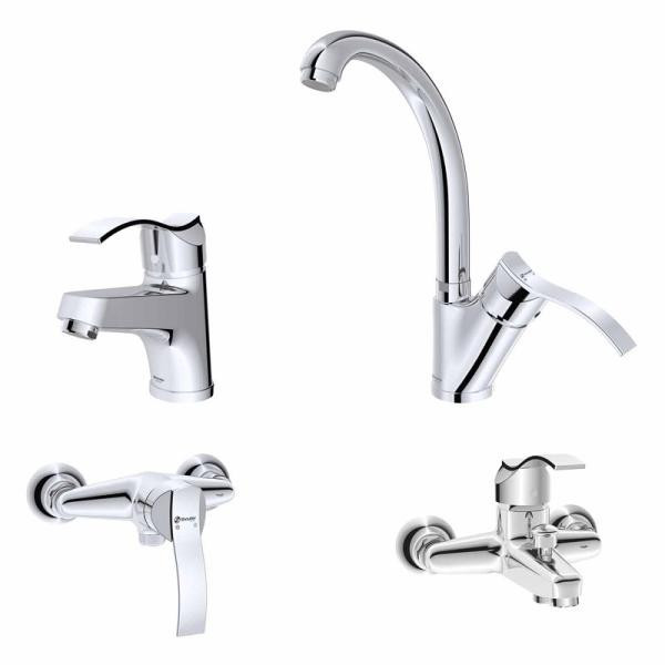 ست شیرآلات اهرمی دارای 4 تیکه شیر حمام ، توالت، روشویی ، ظرفشویی استفاده شده از بهترین قطعات و تکنولوژی روز دنیا ، و با طراحی بسیار زیبا و عالی می باشد.
