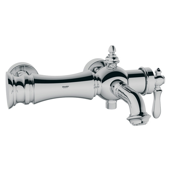 شیر فوق توسط شرکت «شودر» تولید میشود و مدل «بیزانس» نام دارد. رنگ کروم این محصول زیبایی چشمنوازی به آن بخشیده و مکمل طراحی ویژهی آن شده است. آبکاری کروم این شیر از نوع PVD است و از خاصیت آنتیباکتریال سود میبرد. این شیر تنها دارای یک خروجی است و کنترل میزان دبی و دمای آب خروجی آن توسط شیر اهرمی آن انجام میشود. از دیگر مزایای این محصول میتوان به آلیاژ برنج بهکار رافته در ساخت آن اشاره کرد. این آلیاژ دربرابر خوردگی، زنگزدگی و اکسید شدن مقاومت بالایی دارد و یکی از آلیاژهای مناسب شیرآلات است. این شرکت نزدیک به دو دهه است که در زمینهی تولید انواع شیرآلات مدرن و کلاسیک فعالیت میکند و موفقیتهای بسیاری کسب نموده است. محصولات این شرکت موفق به اخذ استانداردهای مختلفی شده است که از این بین میتوان به استاندارد ISO 9001:2008 از موسسه TUV اتریش و استاندارد IBS EN817:2008 از موسسه IQS انگلستان اشاره کرد. شیر حمام شودر مدل بیزانس کروم دارای طول 29 سانتی متر، عرض 22 سانتی متر و ارتفاع 14 سانتی متر است.