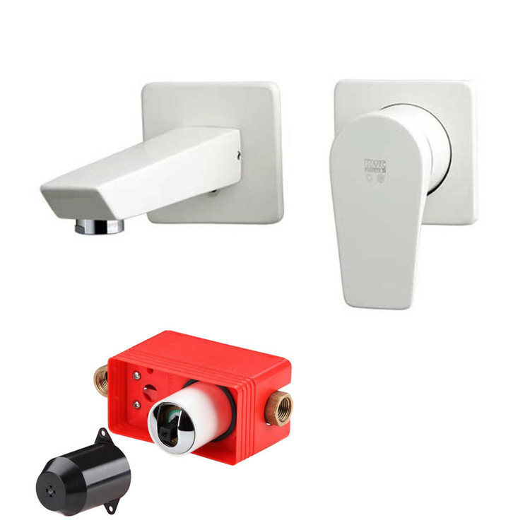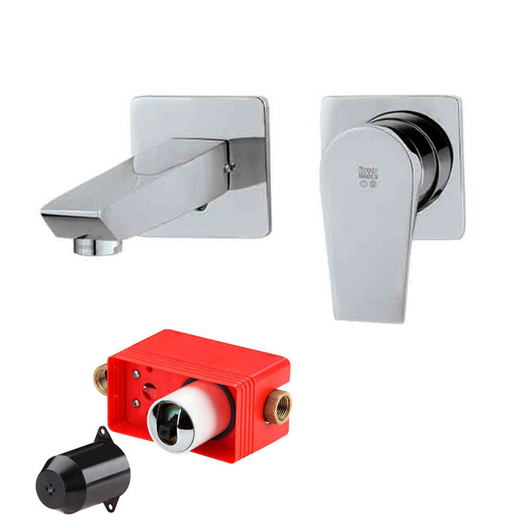 شیر روشویی توکار دو تکه ورونا تیپ 2 به همراه شیر مرکزی، دارای دستگیره و آبریز و صفحه خارجی، آبفشان سیلیکونی Neoperl M24، صفحه آب بندی داخلی که در سه رنگ کروم، سفید و مشکی عرضه می شود.