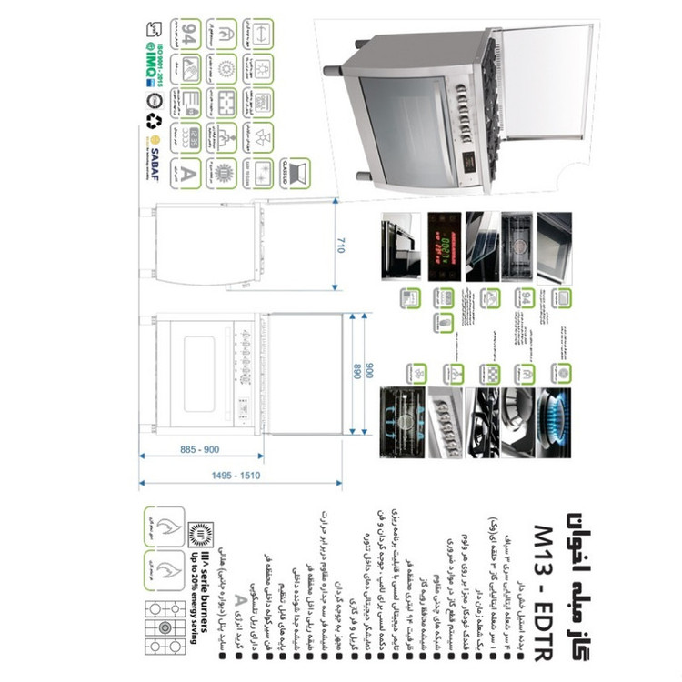 اجاق گاز مبله فردار هلالی ریلی مدل M13-EDTR سری 3 اخوان یکی از پرفروش ترین گازهای مبله اخوان می باشد. این گاز دارای نمایشگر دیجیتالی و همچنین سرشعله های ایتالیایی است. این گاز مبله دارای 5 شعله است که 4 سرشعله ایتالیایی معمولی و 1 سرشعله ایتالیایی سه حلقه ای / یک شعله زمان دار دارد.