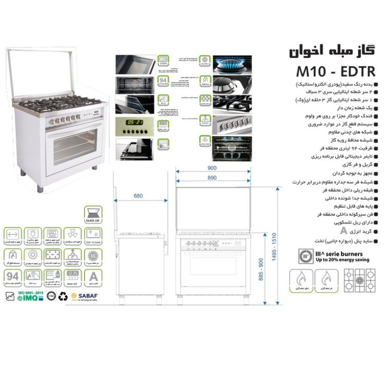 اجاق گاز مبله فردار تخت اخوان مدل M10-EDTR یکی از پرفروش ترین گازهای مبله اخوان می باشد. این گاز دارای نمایشگر دیجیتالی و همچنین سرشعله های ایتالیایی است.