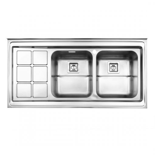 - لگنهای عمیق: لگنهای این سینک دو لگنه با عمق مناسب، فضای بیشتری برای شستشو و نگهداری ظروف فراهم میکنند و مانع از پاشیدن آب به بیرون سینک میشوند.