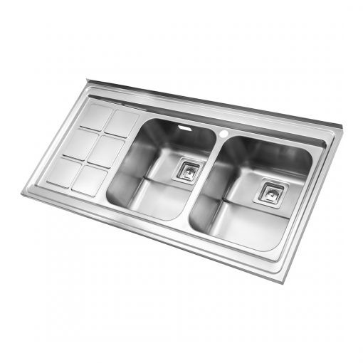 - زیر آب استیل با آببند دستی: این سینک با داشتن خروجی آب کاملاً استیل و آببند دستی، امکان کنترل و نگهداری آب در لگن سینک را برای شستشوهای مختلف فراهم میکند.