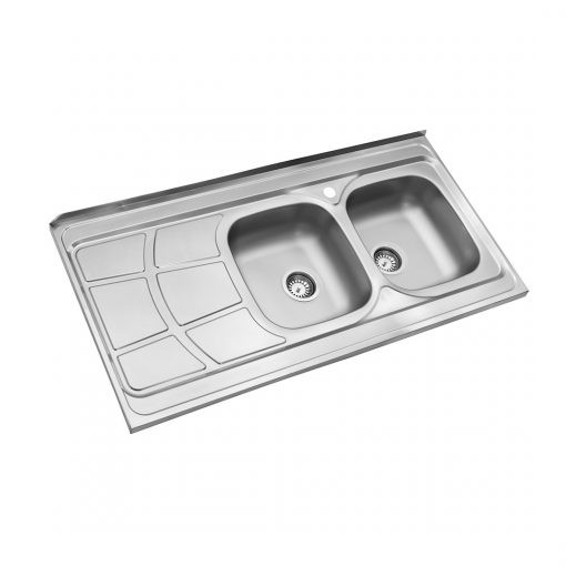 - لگنهای عمیق: لگنهای این سینک دو لگنه با عمق مناسب، فضای بیشتری برای شستشو و نگهداری ظروف فراهم میکنند و مانع از پاشیدن آب به بیرون سینک میشوند.
