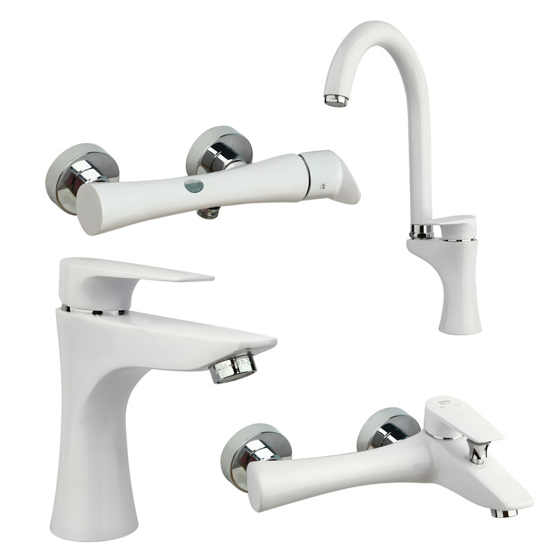 شیر ظرفشویی با ابعاد 37x27.5x6 سانتی متر - با وزن 3.500 کیلو گرم شیر روشویی با ابعاد 22.5x18x5.5 سانتی متر - با وزن 2.300 کیلو گرم شیر دوش با ابعاد 21x18x14 سانتی متر - با وزن 2.600 کیلو گرم شیر توالت با ابعاد 14x21x6 سانتی متر - با وزن 2.200 کیلو گرم