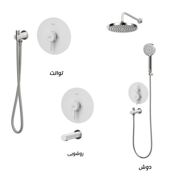 ست شیرآلات توکار کسری مدل کویین سفید کروم