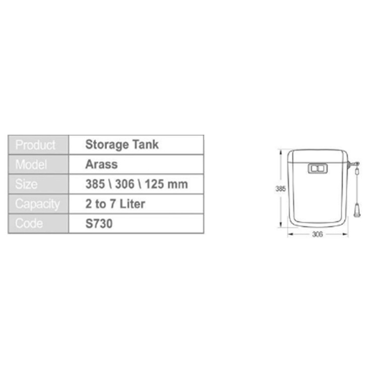 فلاش تانک ایمن آب مدل ارس، کششی-فشاری که در این قسمت به معرفی آن می پردازیم، مجهز به فلوتر(شناور) دیافراگمی می باشد و بی صداست. این دستگاه قابلیت تنظیم میزان خروج آب را دارد تا در مصرف آب صرفه جویی شود. همچنین این فلاش تانک دارای لوله و اتصالاتی با طراحی جدید می باشد که در مدت زمان 5 دقیقه، به آسانی نصب می شود.فلاش تانک ارس دارای سه حالت تخلیه به صورت کششی و شاسی با کارکرد دو زمانه می باشد. بدنه این فلاش تانک از ABS-POM ساخته شده است. وجود نشان استاندارد ایران گویای کیفیت مطلوب این فلاش تانک می باشد. ظرفیت مخزن این فلاش تانک 2 تا 7 لیتر می باشد.