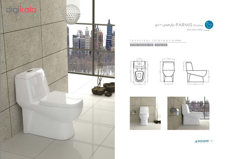 توالت فرنگی پارمیس که با خروجی 8 سانتی متری است که به فرنگی پارمیس سیملس معروف است و قدرت بیشتری در تخلیه زباله نسبت به مدل قدیمی تر خود دارد و همچنین طراحی زیباتری داراست