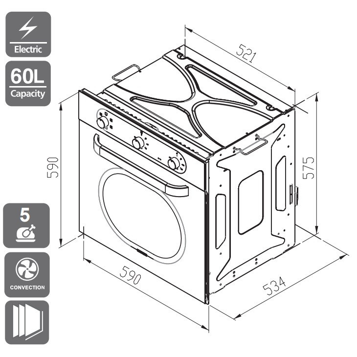 ابعاد برش کابینت : طول : 56.8 cm - عمق 56 cm - ارتفاع 58.6 cm