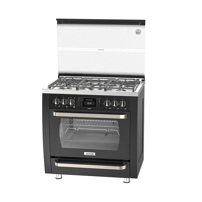 ابعاد 90 cm میباشد. رنگ-محصول مشکی میباشد. تعداد شعله پنج شعله میباشد. پنل کنترل لمسی ندارد. تایمر مکانیکی ندارد. تایمر دیجیتال لمسی دارد. جوجه گردان دارد. شیشه فر 3 جداره و جدا شونده دارد. فر دار دارد. فن خنک کننده اتوماتیک دارد. فن گردش هوادارد. المنت برقی ندارد. ترموکوپل صفر ثانیه دارد. پوشش لعاب داخلی آسان تمیز شونده میباشد. پایه های استیل قابل تنظیم میباشد. مصرف انرژی گرید مصرف انرژی A میباشد. ترموکوپل تاپ تایم, شبکه چدنی لولایی, فن گردش هوا در محفظه فر دارد.