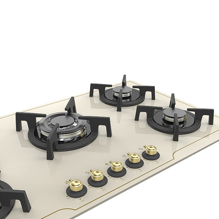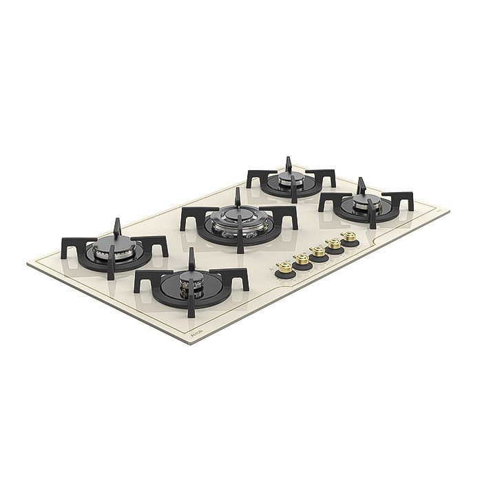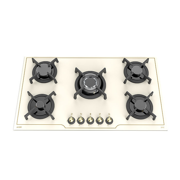 ابعادی استاندارد برای تمام آشپزخانهها گاز توکار IG521CN آلتون ابعاد و اندازه کاملا استانداردی دارد. یعنی در ساخت آن تمام موارد استاندارد رعایت شده است. شما میتوانید انتظار ابعاد کاملا استاندارد در سطح یک گاز 5 شعله را از این محصول داشته باشید. یعنی اگر قصد دارید برای آشپزخانهتان یک اجاق گاز 5 شعله تهیه کنید، این محصول به راحتی روی کابینت آشپزخانهتان نصب خواهد شد. ابعاد این محصول 51,5 در 90 سانتیمتر بوده و همانطور که توضیح دادیم، میتواند برای اکثر آشپزخانهها کاملا مناسب باشد. یعنی تنها کافی است ابعاد ذکر شده را برای کابینت آشپزخانهتان در نظر بگیرید تا هنگام نصب محصول دچار مشکل نشوید. در مورد نحوه نصب محصول هم در انتهای این مطلب توضیح خواهیم داد. بهترین مشعلها با توان حرارتی بالا گاز توکار IG521CN آلتون دارای بهترین مشعلها از لحاظ توان حرارتی و همچنین سرشعلهها است. قبل از هر چیزی به این موضوع اشاره کنیم که گاز توکار IG521CN آلتون از سرشلعههای ساباف (SABAF) ایتالیایی ساخته شده است. از طرفی دیگر، توان حرارتی مشعلهای این محصول هم بسیار بالا هستند. همانطور که میدانید این موضوع میتواند روی روند پخت و پز غذاها، تاثیر بسزایی داشته باشد. چرا که هر چقدر توان حرارتی مشعلها بالاتر باشد، به همان اندازه کیفیت پخت و پز غذاها هم، بیشتر خواهد شد. در اینجا توان حرارتی هر کدام از مشعلهای گاز توکار IG521CN آلتون را به طور مجزا بررسی خواهیم کرد. توان حرارتی مشعل پلوپز معادل 3,1 KW، مشعل بزرگ 2.3 KW، مشعل متوسط 1.75 KW و مشعل کوچک هم، توان حرارتی 1.2 KW دارد.